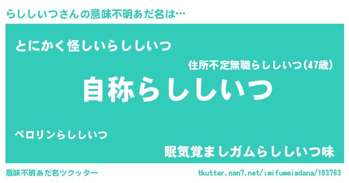| 肩書あだ名 | 『らししいつ閣下』『らししいつ班長』 |