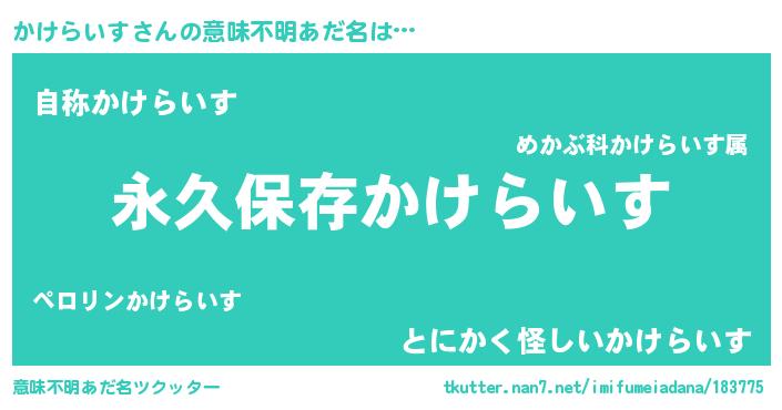 | 男性向けラノベタイトル風あだ名 | 『かけらいすという概念が存在しない退屈な世界 』 |
