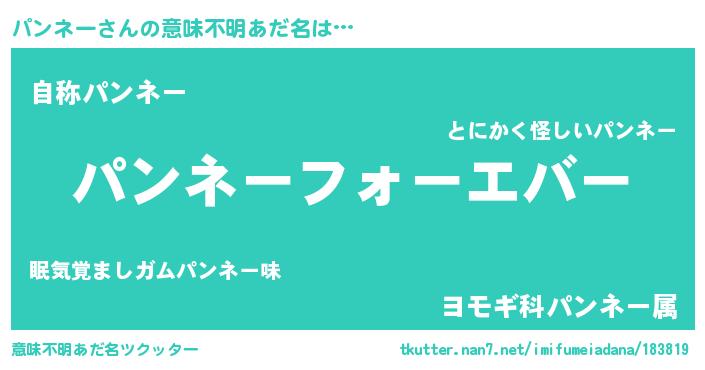 | 男性向けラノベタイトル風あだ名 | 『やはりパンネーの青春ラブコメはまちがっている 』 |