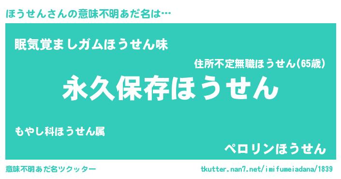 | 胡散臭い通販商品みたいなあだ名 | 『来世でも幸せになれる健康食品…その名も「ほうせん」』 |
