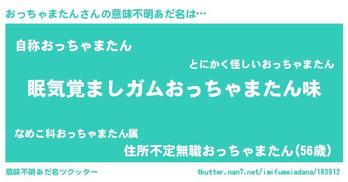 | 男性向けラノベタイトル風あだ名 | 『ノーゲーム・ノーオッチャマタン』 |