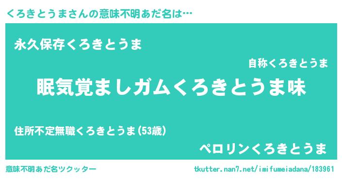 | ヘコむあだ名 | 『くろきとうま(震え声)』『くろっふぃ~』 |