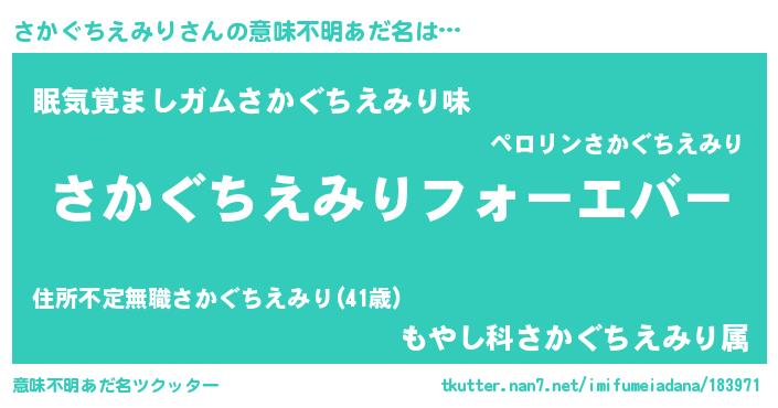 | 伝説のあだ名 | 『最古の陰陽師さかぐちえみり』 |