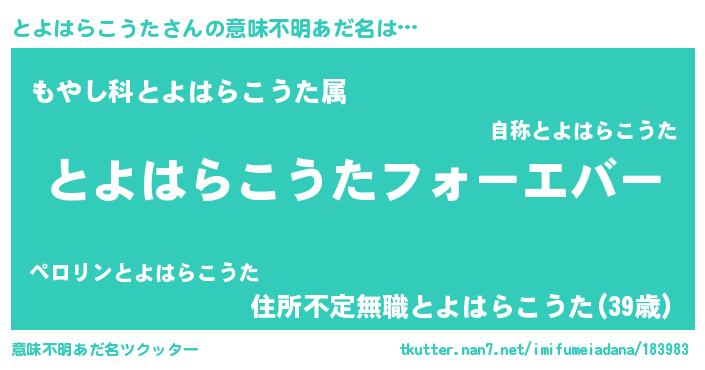 | 欧米人風あだ名 | 『とよはらこうたクリステル』 |