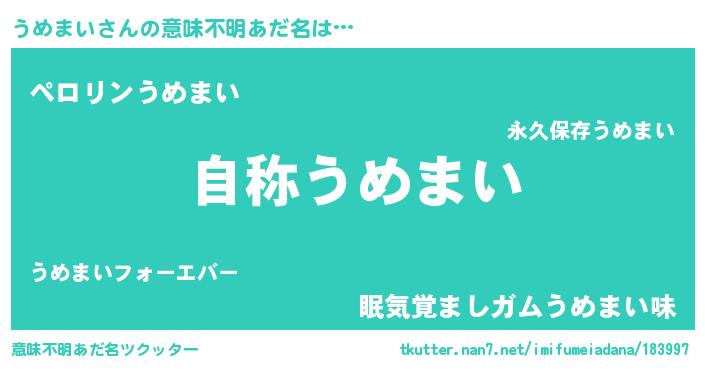 | ヒーロー風カッコイイあだ名 | 『ウルトラ戦士ウメマイ』『ネオウメマイ』 |