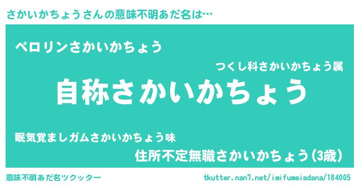 | ヒーロー風カッコイイあだ名 | 『最強戦士サカイカチョウ』 |