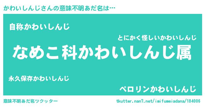 | 男性向けラノベタイトル風あだ名 | 『転生したらかわいしんじだった件』 |