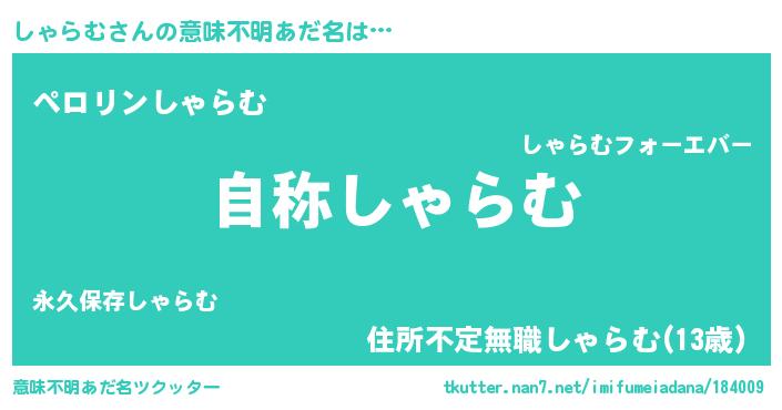 | 男性向けラノベタイトル風あだ名 | 『Re:しゃらむから始める異世界生活』 |