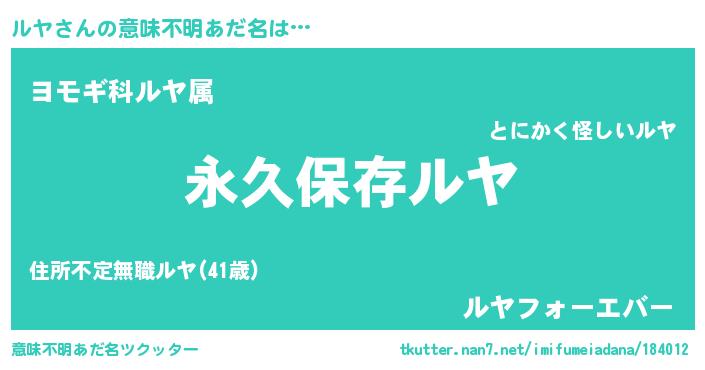 | 男性向けラノベタイトル風あだ名 | 『ルヤという概念が存在しない退屈な世界 』 |