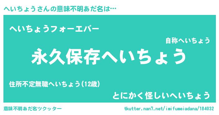 | ヒーロー風カッコイイあだ名 | 『ネオヘイチョウ』『暗黒騎士ヘイ』 |