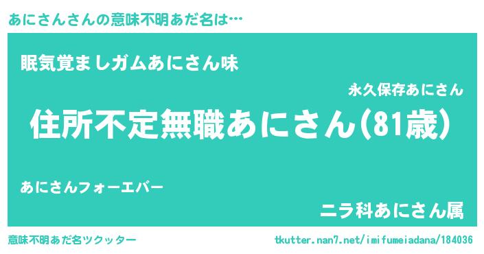 | 料理風あだ名 | 『あにさんのカルパッチョ風』 |