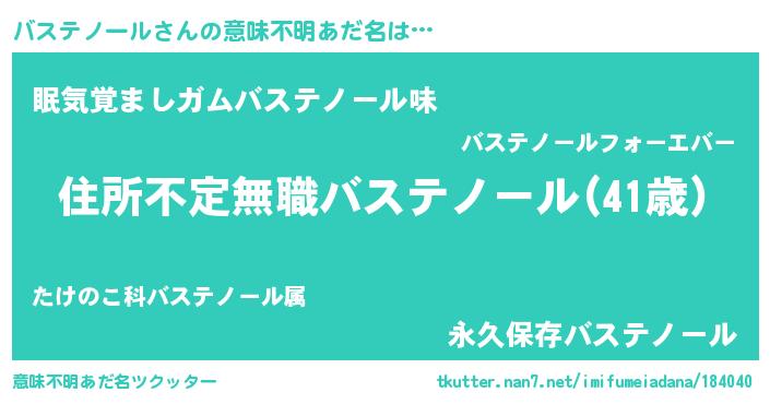 | 男性向けラノベタイトル風あだ名 | 『この素晴らしい世界にバステノールを!』 |