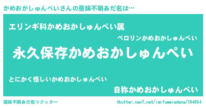| ヘコむあだ名 | 『かめおかしゅんぺい(笑)』『かめもー』 |