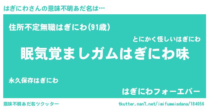 | 欧米人風あだ名 | 『ダニエルはぎにわ』『ウサインはぎにわ』 |