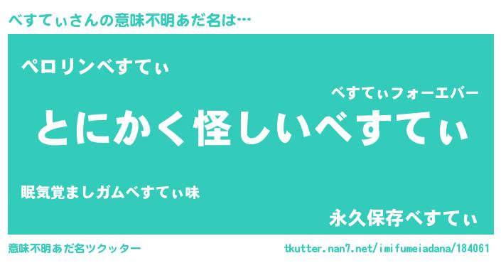 | 料理風あだ名 | 『べすてぃの豆乳スープ』 |