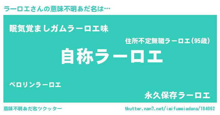 | ヘコむあだ名 | 『ラーロエ(小並感)』『ラーもー』 |