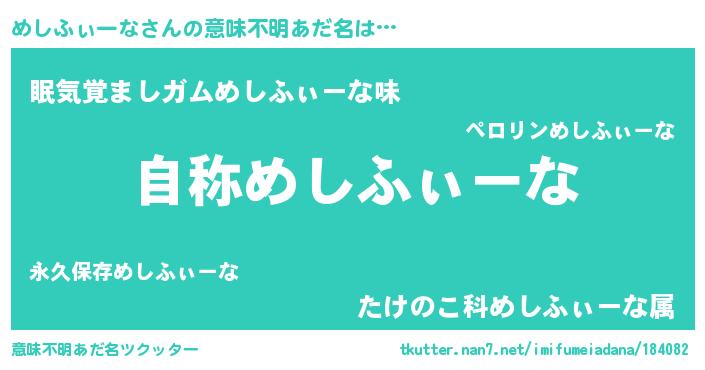 | 恥ずかしいあだ名 | 『メシフィーナデラックス』『めしちん』 |