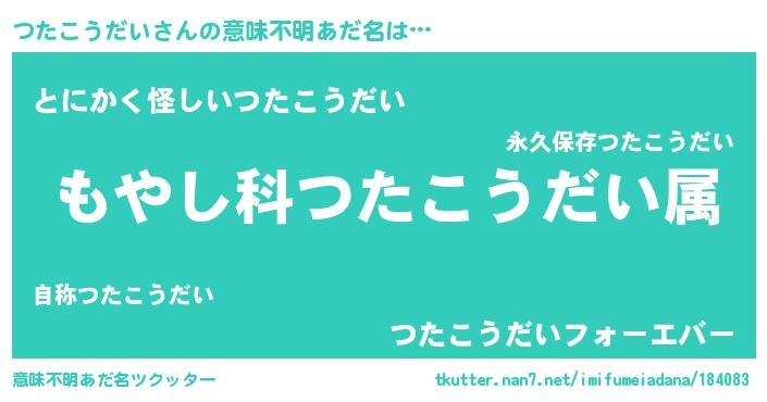 | 男性向けラノベタイトル風あだ名 | 『つたこうだいに滅ぼされるだけの簡単なお仕事です』 |