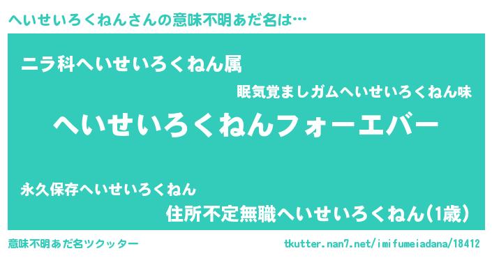 | 欧米人風あだ名 | 『アンジェラ・へいせいろくねん』 |