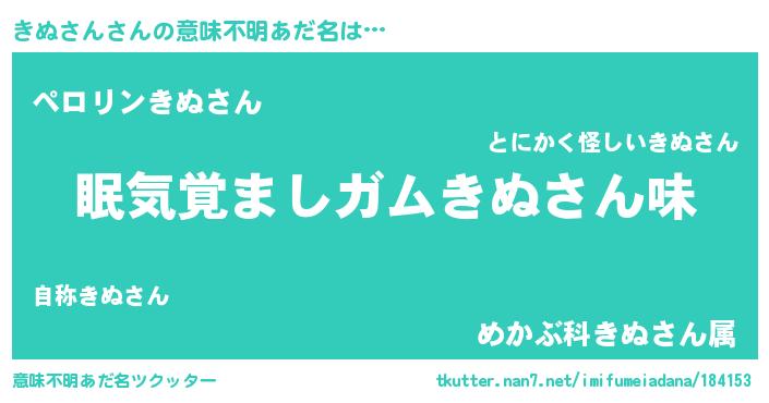 | 欧米人風あだ名 | 『ダニエルきぬさん』『マイケルきぬさん』 |