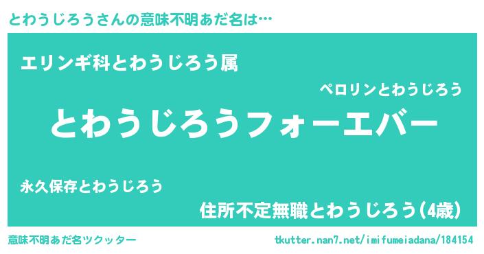 | ファンタジー風あだ名 | 『エターナルトワウジロウー』 |