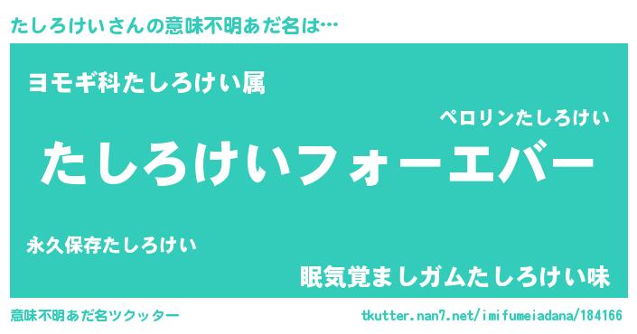 | ファンタジー風あだ名 | 『エターナルタシロケイー』『タシフェル』 |