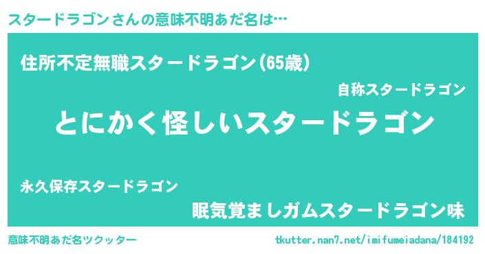 | 胡散臭い通販商品みたいなあだ名 | 『伝統あるサプリメント…その名も「スタードラゴン」』 |