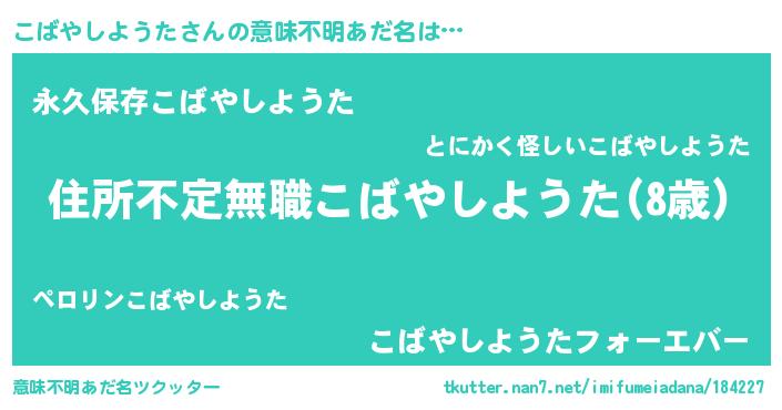 | ヘコむあだ名 | 『こばやしようた(笑)』『豆乳』 |