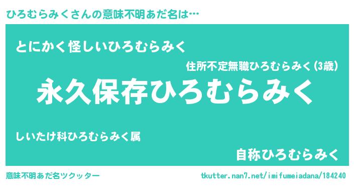 | ヘコむあだ名 | 『ひろむらみく(爆)』『ひろお』 |