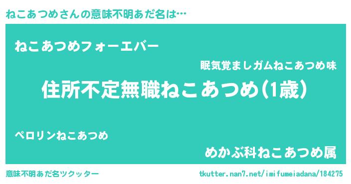 | ポケモン風あだ名 | 『ネコゴンZ』『ネーコイ』 |