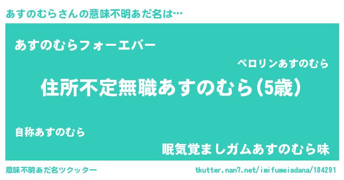 | 女子向けラノベタイトル風あだ名 | 『乙女ゲームの破滅フラグしかない悪役あすのむらに転生してしまった…』 |