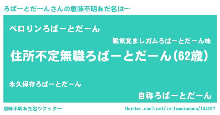 | 男性向けラノベタイトル風あだ名 | 『ろばーとだーんに滅ぼされるだけの簡単なお仕事です』 |