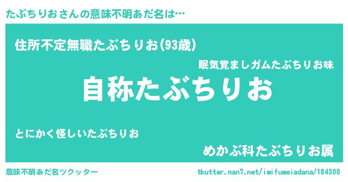 | 欧米人風あだ名 | 『ケンブリッジたぶちりお』 |