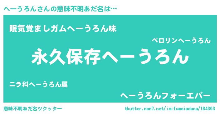 | 胡散臭い通販商品みたいなあだ名 | 『前代未聞の健康食品…その名も「へーうろん」』 |