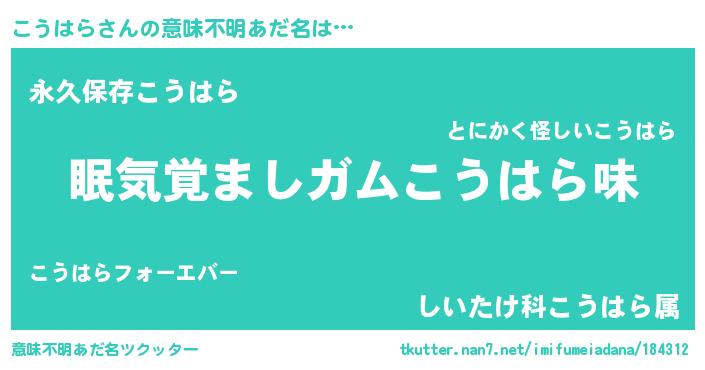 | ヒーロー風カッコイイあだ名 | 『慈愛の使者こうはら』『ネオコウハラ』 |