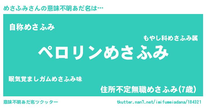 | 男性向けラノベタイトル風あだ名 | 『めさふみに滅ぼされるだけの簡単なお仕事です』 |