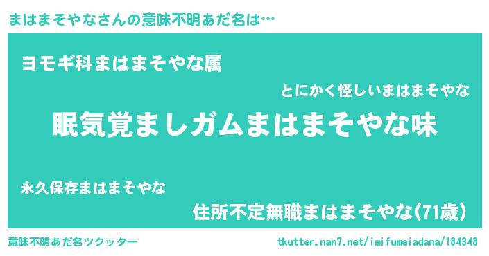 | 欧米人風あだ名 | 『まはまそやな・ステッグマイヤー』 |