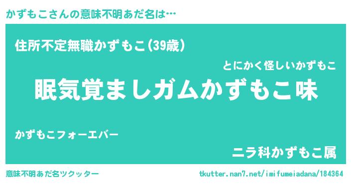 | ヒーロー風カッコイイあだ名 | 『慈愛の使者かずもこ』『仮面カズダー』 |