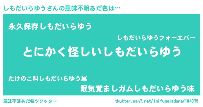 | 胡散臭い通販商品みたいなあだ名 | 『信頼と実績のペンダント…その名も「しもだいらゆう」』 |