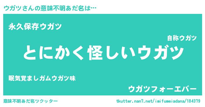 | ヘコむあだ名 | 『ウガぷりん』『ウガツ(小並感)』 |