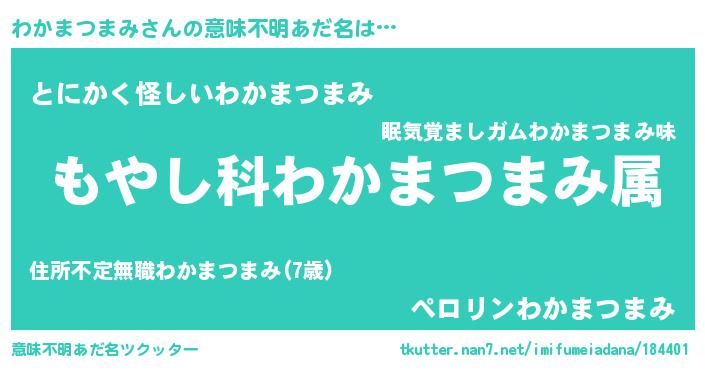 | 男性向けラノベタイトル風あだ名 | 『転生したらわかまつまみだった件』 |