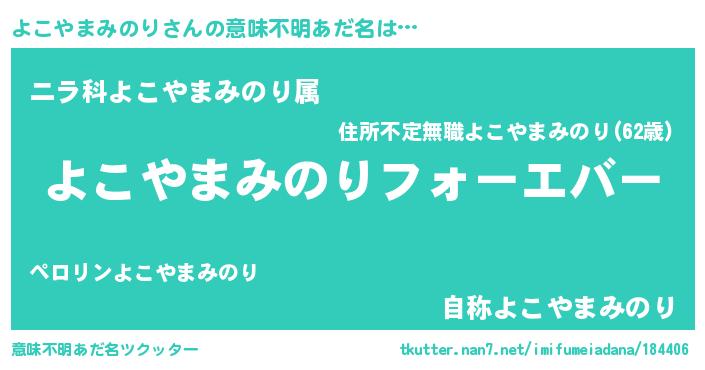 | ファンタジー風あだ名 | 『エターナルヨコヤマミノリー』 |