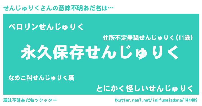 | 胡散臭い通販商品みたいなあだ名 | 『来世でも幸せになれる水素水…その名も「せんじゅりく」』 |