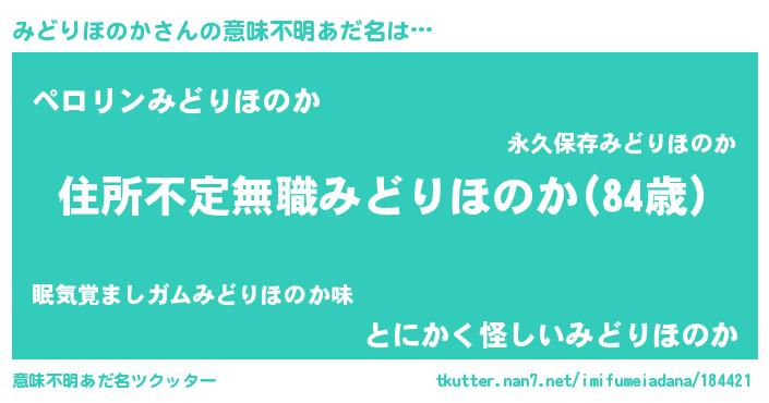 | ヒーロー風カッコイイあだ名 | 『仮面ミドダー』『スーパーミドリホノカ』 |