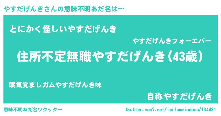 | 男性向けラノベタイトル風あだ名 | 『うちのやすだげんきが世界を掌握している!』 |