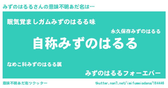 | 男性向けラノベタイトル風あだ名 | 『魔法科高校のみずのはるる』 |