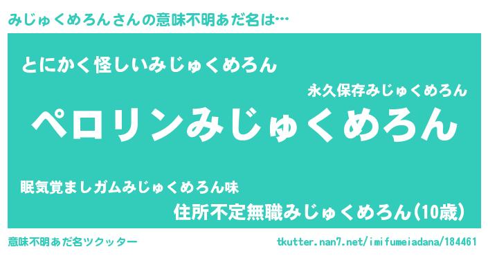| 欧米人風あだ名 | 『アンジェラ・みじゅくめろん』 |