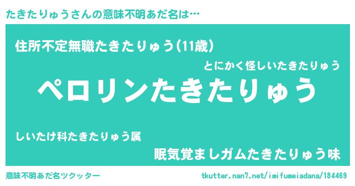 | 男性向けラノベタイトル風あだ名 | 『たきたりゅうの憂鬱』 |
