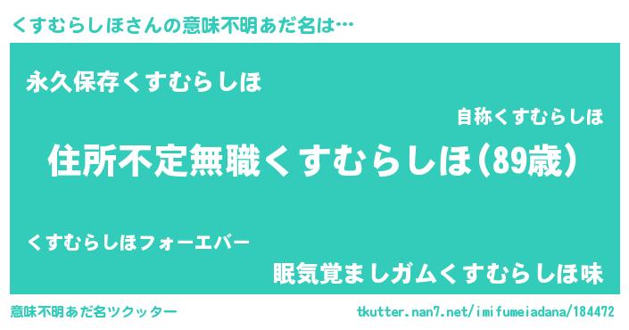 | 男性向けラノベタイトル風あだ名 | 『この素晴らしい世界にくすむらしほを!』 |