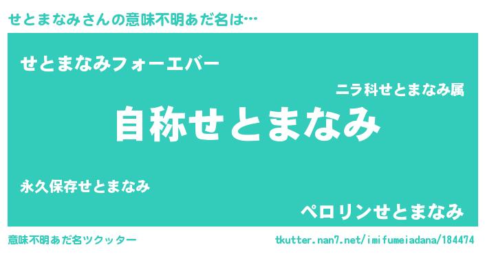 | 男性向けラノベタイトル風あだ名 | 『緋弾のセトマナミ』『せとまなみの憂鬱』 |